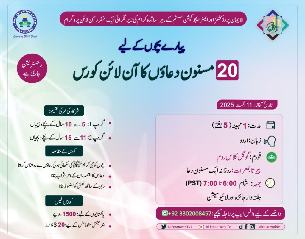 • Students of Matric/Sanawiya Aamma, FA/ Sanwiyya khassa, BS level can benefit from this course.